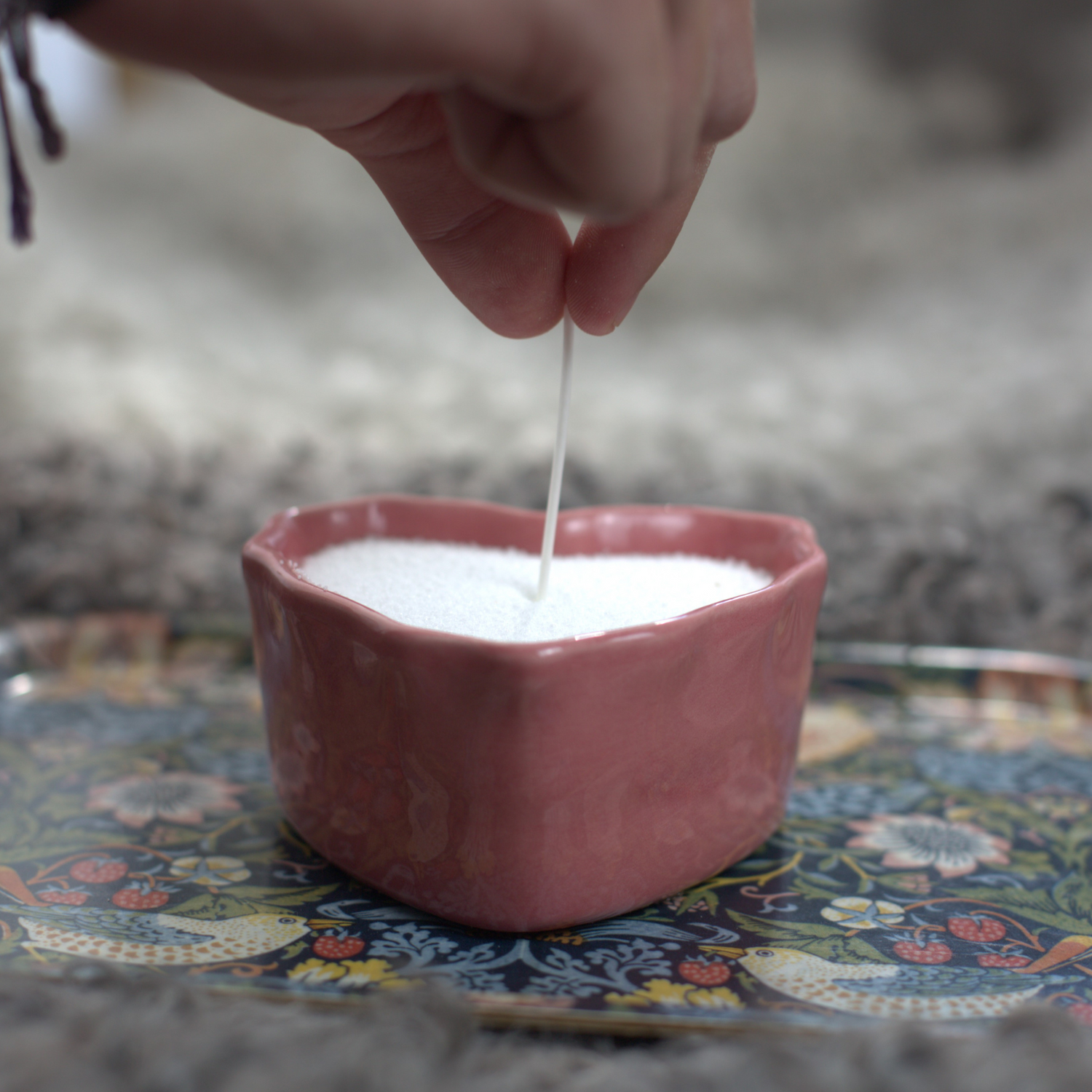 Våra sandljus är växtbaserade och giftfria, men inte ätbara, så undvik att förtära dem. Undvik även att få sandljus i ögonen för att undvika irritation.