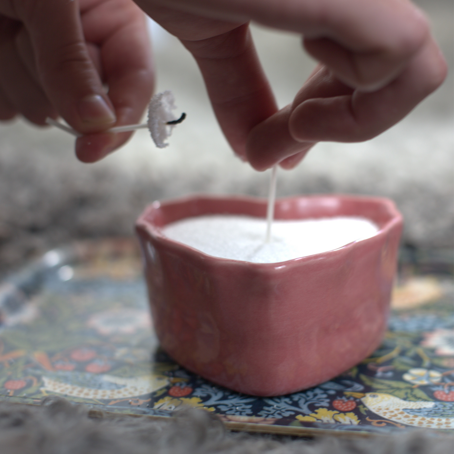 När ljuset brunnit upp så kan du ta bort veken och vaxpoolen runtom. Skaka lite på behållaren och tillsätt en ny veke så har du ett helt nytt ljus!